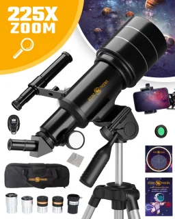 Met de Rising Phoenix telescoop kijk je verder dan ooit. Dankzij een krachtige vergroting tot wel 225x en een heldere 70mm lens zie je zowel hemellichamen als verre landschappen haarscherp. Of je nu maankraters wilt bestuderen, sterrenbeelden wilt vinden of vogels in de verte wilt volgen: deze complete set geeft je alles wat je nodig hebt om direct te beginnen met waarnemen en vastleggen.