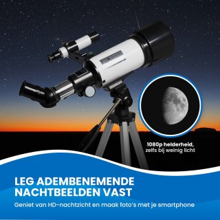 - Compleet uitgerust: finderscope, zon-/maanfilter, smartphone-adapter, draagtas en accessoires meegeleverd zodat je meteen kunt beginnen.